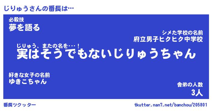 | 意味不明あだ名 | 『ペロリンじりゅう』『永久保存じりゅう』 |