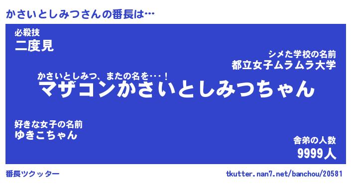 | 伝説のあだ名 | 『封印されしスナイパーかさいとしみつ』 |