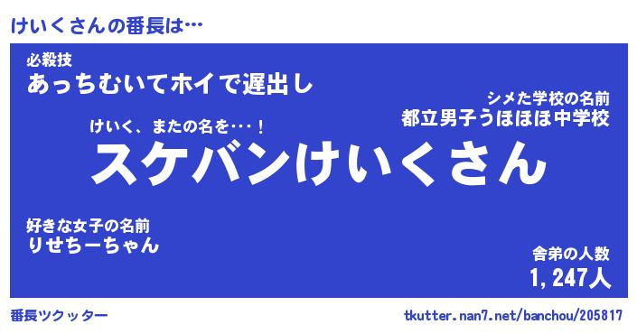 | 意味不明あだ名 | 『ペロリンけいく』『けいくフォーエバー』 |
