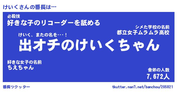 | 意味不明あだ名 | 『ペロリンけいく』『けいくフォーエバー』 |