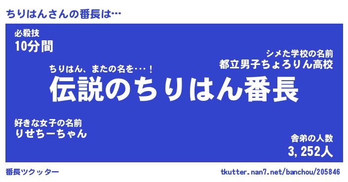 | ファンタジー風あだ名 | 『チリフェル』『エターナルチリハンー』 |