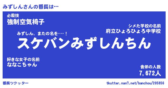 | 意味不明あだ名 | 『ペロリンみずしん』『永久保存みずしん』 |