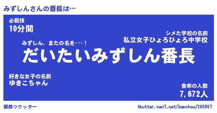 | ヒーロー風カッコイイあだ名 | 『スーパーミズシン』『黄金騎士ミズ』 |
