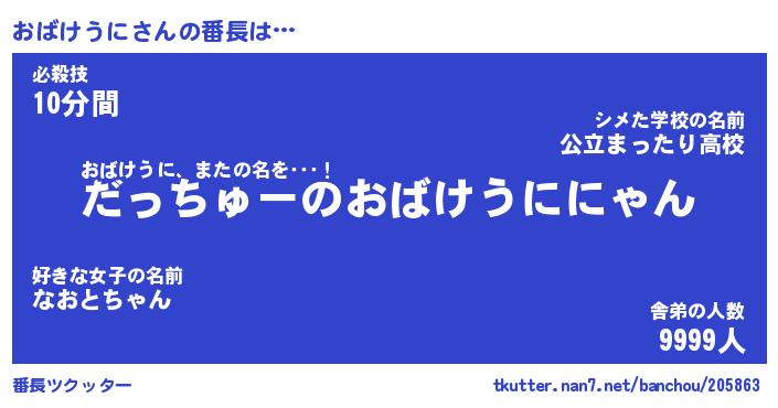| ヒーロー風カッコイイあだ名 | 『スーパーオバケウニ』『天弓騎士オバ』 |