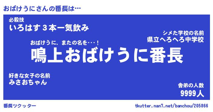 | ヒーロー風カッコイイあだ名 | 『スーパーオバケウニ』『天弓騎士オバ』 |