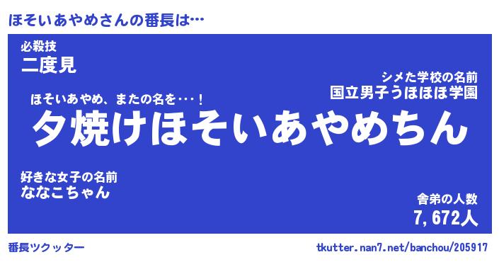 | ヒーロー風カッコイイあだ名 | 『スーパーホソイアヤメ』『炎刃騎士ホソ』 |