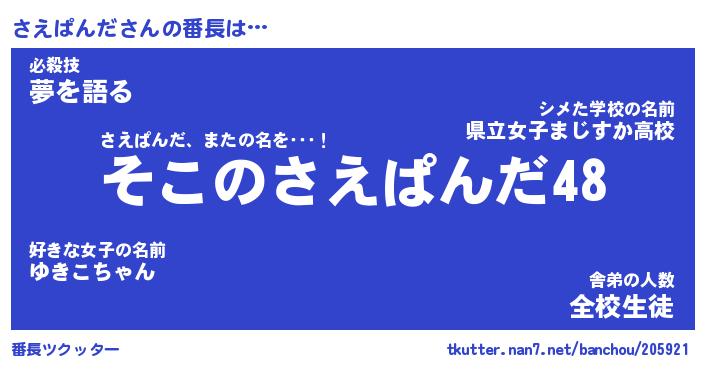 | 伝説のあだ名 | 『不死鳥のスナイパーさえぱんだ』 |