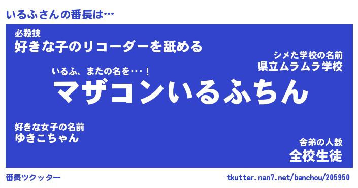 | 肩書あだ名 | 『いるふ御曹司』『いるふ国家主席』 |