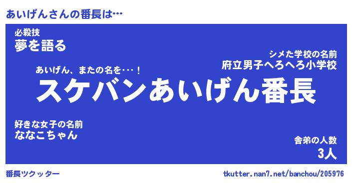 | 意味不明あだ名 | 『ペロリンあいげん』『永久保存あいげん』 |