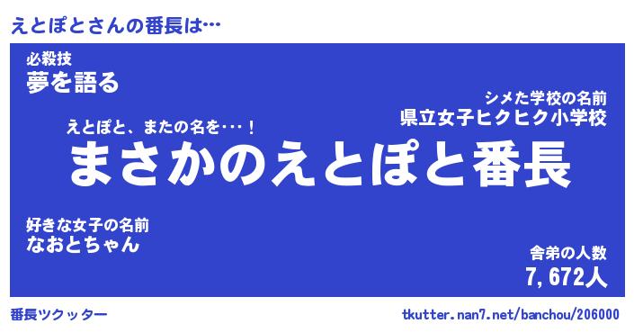 | 肩書あだ名 | 『えとぽと店長』『えとぽと大統領』 |