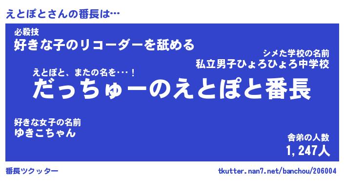 | 欧米人風あだ名 | 『マイケルえとぽと』『ウサインえとぽと』 |