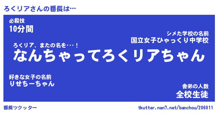 | 肩書あだ名 | 『ろくリア社長令嬢』『ろくリア総理大臣』 |
