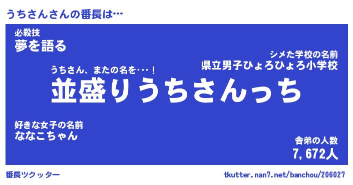 | 意味不明あだ名 | 『ペロリンうちさん』『永久保存うちさん』 |