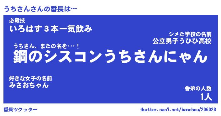 | 意味不明あだ名 | 『ペロリンうちさん』『永久保存うちさん』 |