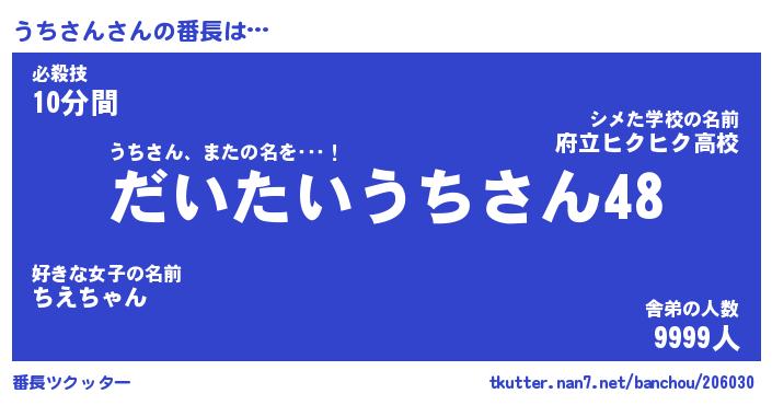 | 意味不明あだ名 | 『ペロリンうちさん』『永久保存うちさん』 |