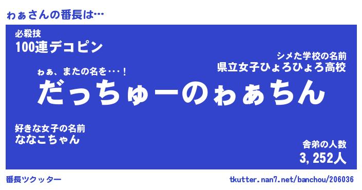 | ヒーロー風カッコイイあだ名 | 『スーパーヮァ』『ウルトラゎぁマン』 |