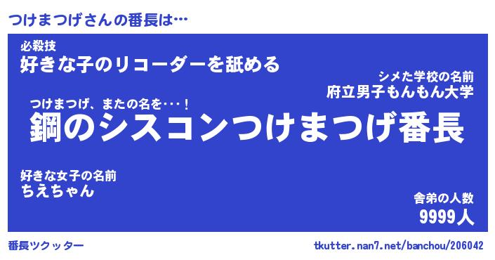 | ポケモン風あだ名 | 『ツケチュウ』『ツケマダネ』 |