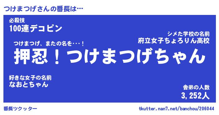 | ファンタジー風あだ名 | 『ツケフェル』『エターナルツケマツゲー』 |