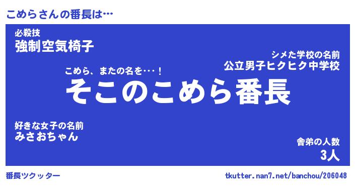 | 2回繰り返すあだ名 | 『こめこめ』『ここめめ』『いらいら』 |
