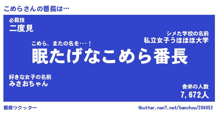 | ヘコむあだ名 | 『こめにゅー』『酢こんぶ』『こめを』 |