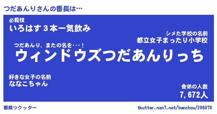| 伝説のあだ名 | 『伝説のスナイパーつだあんり』 |