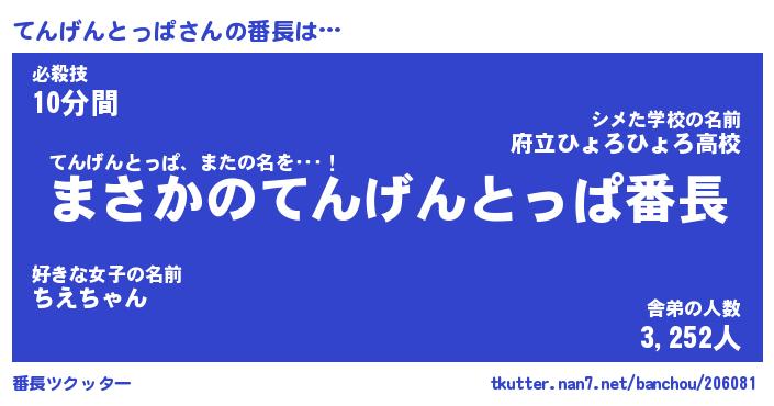 | 男性向けラノベタイトル風あだ名 | 『てんげんとっぱの憂鬱』 |