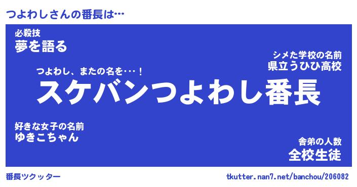 | ファンタジー風あだ名 | 『ツヨフェル』『エターナルツヨワシー』 |