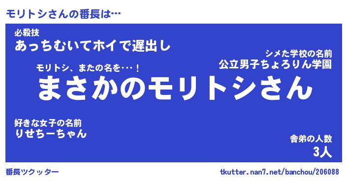 | 意味不明あだ名 | 『ペロリンモリトシ』『永久保存モリトシ』 |