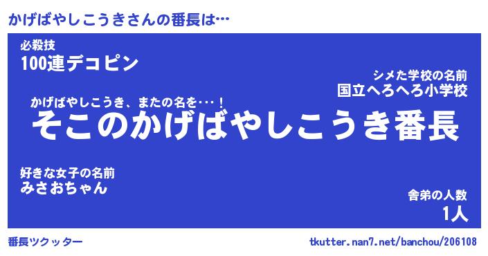 | ピコ太郎風あだ名 | 『カコ五郎』『ピカ三郎』『カゲ四郎』 |