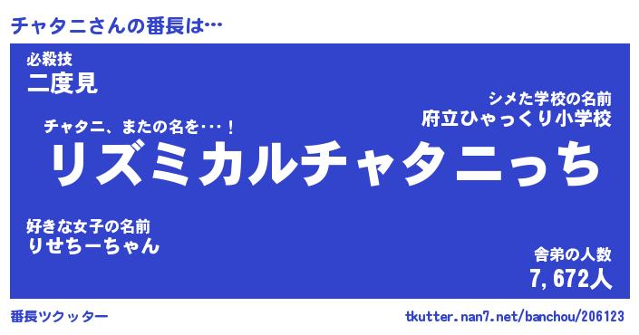 | 意味不明あだ名 | 『ペロリンチャタニ』『永久保存チャタニ』 |