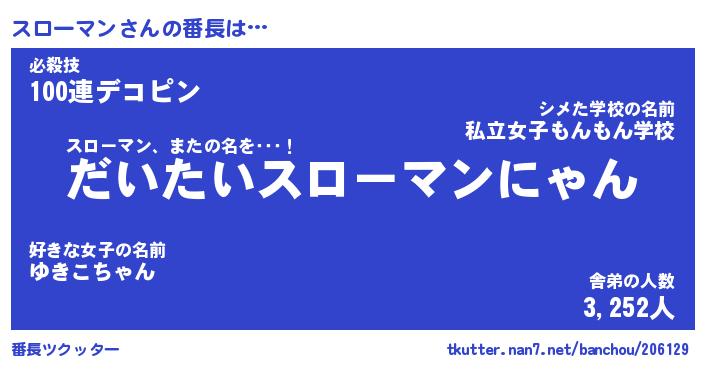 | ヘコむあだ名 | 『スロっふぃ~』『つくし』『スロを』 |