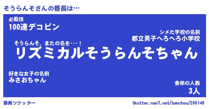 | 伝説のあだ名 | 『伝説のスナイパーそうらんそ』 |