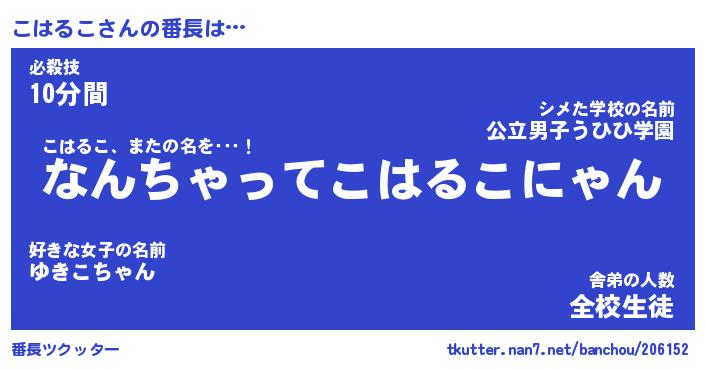 | 伝説のあだ名 | 『伝説のスナイパーこはるこ』 |