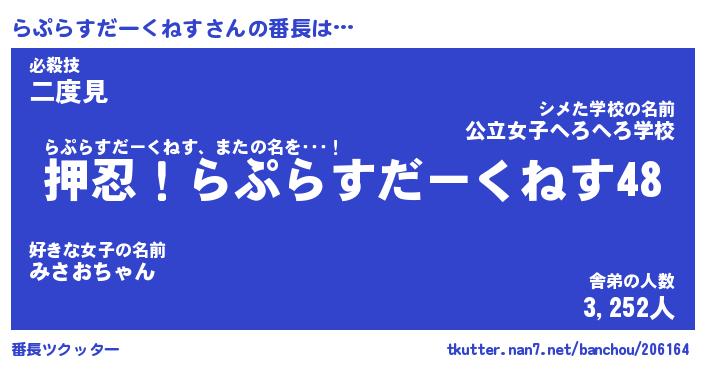 | ヘコむあだ名 | 『らぷっふぃ~』『牛乳』 |