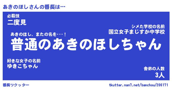 | 男性向けラノベタイトル風あだ名 | 『あきのほしの憂鬱』 |
