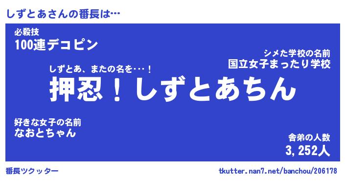 | 欧米人風あだ名 | 『マイケルしずとあ』『ウサインしずとあ』 |