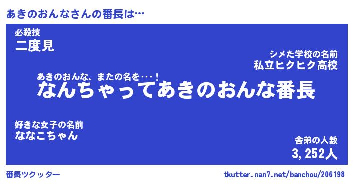 | 伝説のあだ名 | 『伝説のスナイパーあきのおんな』 |