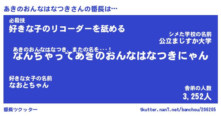 | 肩書あだ名 | 『あきのおんなはなつきCEO』 |