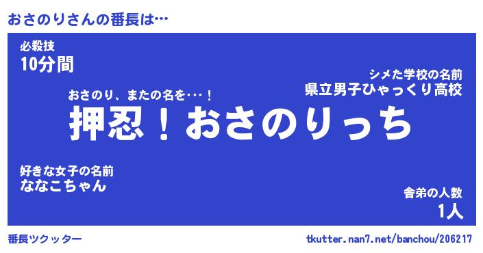 | 伝説のあだ名 | 『封印されしスナイパーおさのり』 |
