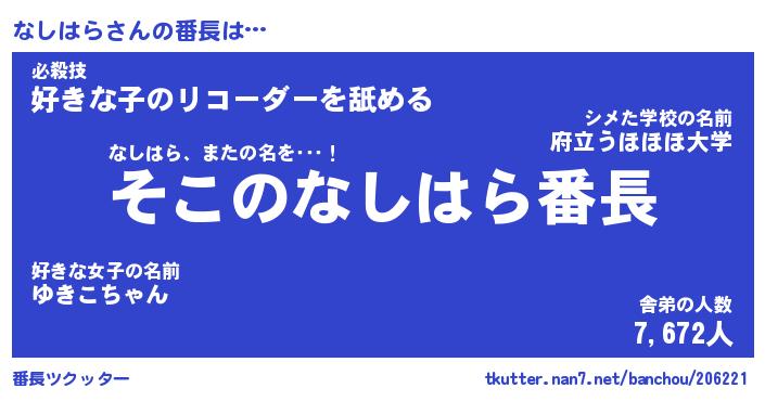 | 肩書あだ名 | 『なしはら御曹司』『なしはら国家主席』 |