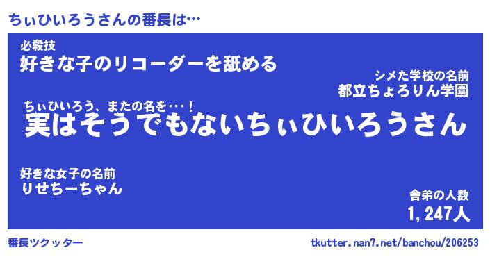 | 意味不明あだ名 | 『ペロリンちぃひいろう』 |