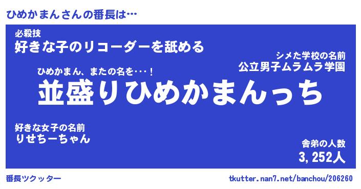 | 男性向けラノベタイトル風あだ名 | 『ひめかまんの憂鬱』 |