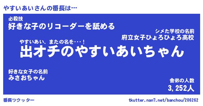 | ヘコむあだ名 | 『やすふぇ~』『酢こんぶ』 |