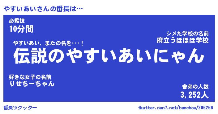 | ピコ太郎風あだ名 | 『ヤコ二郎』『ピヤ十郎』『ヤス一郎』 |