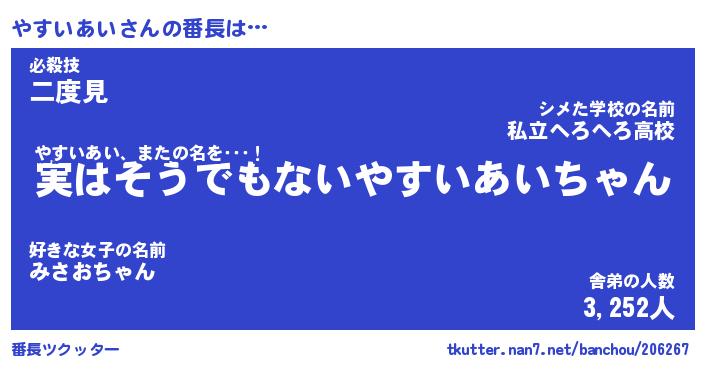| ヘコむあだ名 | 『やすっふぃ~』『酢こんぶ』 |