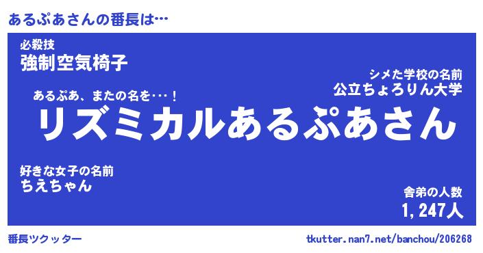 | 肩書あだ名 | 『あるぷあCEO』『あるぷあ大統領』 |