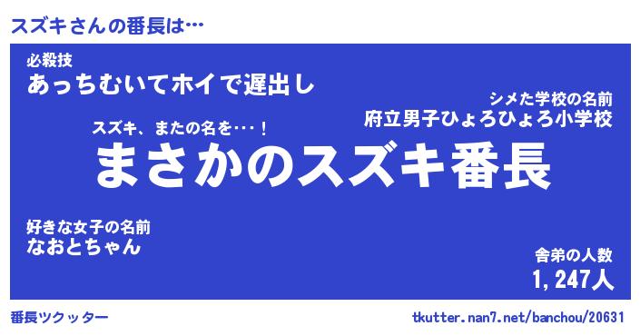 | ピコ太郎風あだ名 | 『スコ次郎』『ピス六郎』『スズ三郎』 |