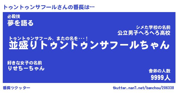 | 男性向けラノベタイトル風あだ名 | 『トゥントゥンサフールの憂鬱』 |