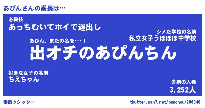 | 意味不明あだ名 | 『ペロリンあぴん』『あぴんフォーエバー』 |