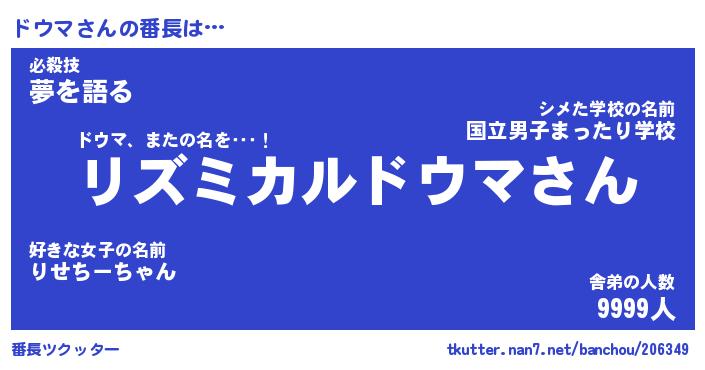 | ポケモン風あだ名 | 『ドウチュウ』『ドウマダネ』 |